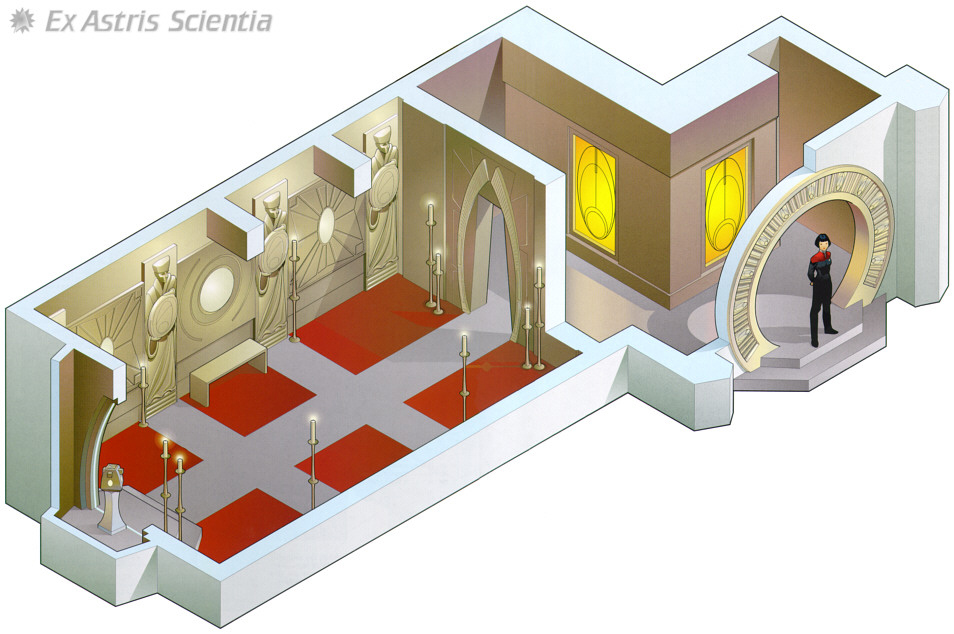 Once the station would have housed a myriad number of Bajoran or other slaves. This location was set aside for any daily worship that the slaves would have had. This has now been repurposed into a general purpose religious hub for the entire population of the station.