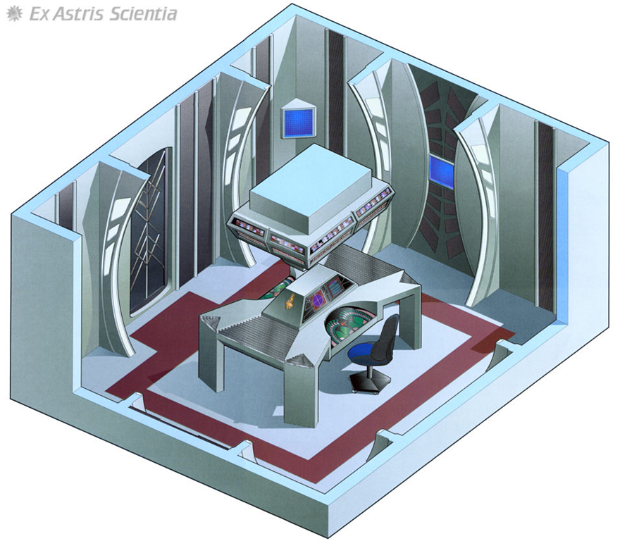 Representative of the many science labs located within the central core of the station. Each set for working within the different fields of the science division so each lab would have a slightly different basic layout.